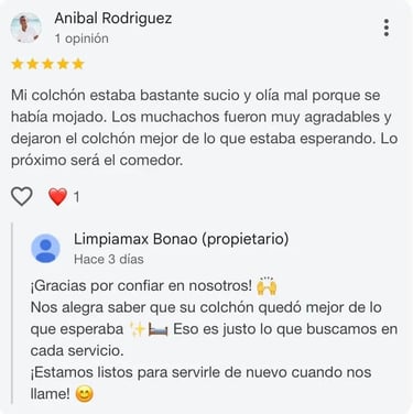 Opiniones reales de clientes satisfechos con la limpieza de sus muebles y colchones en Bonao