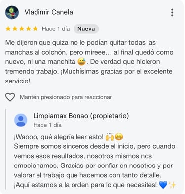 Opiniones reales de clientes satisfechos con la limpieza de sus muebles y colchones en Bonao